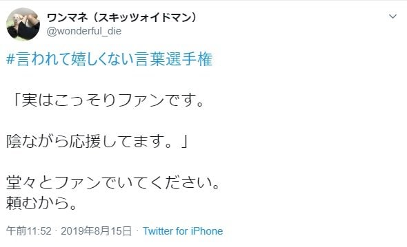 堂々とファンでいてください。頼むから。」