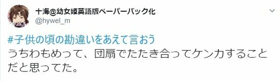 「うちわもめって、団扇でたたき合ってケンカすることだと思ってた。」