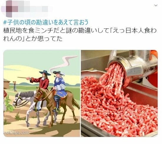 「植民地を食ミンチだと謎の勘違いして『えっ日本人食われんの』とか思ってた」