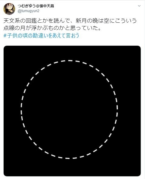 「天文系の図鑑とかを読んで、新月の晩は空にこういう点線の月が浮かぶものかと思っていた。」