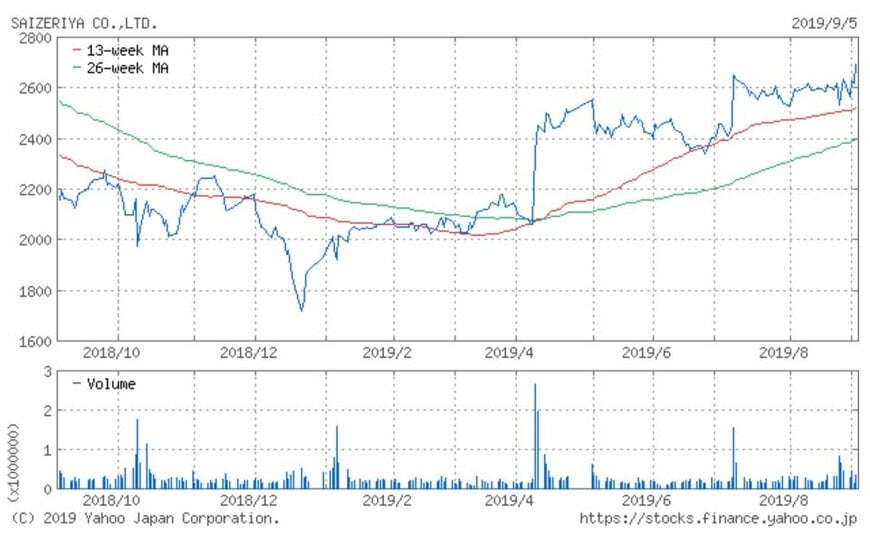 同社株価は昨年12月25日に1,696円の安値を更新後に反転し、1月には2,000円を回復しました。その後は4月に2,500円台、7月に2,600円台を回復し、現在も2,600円前後で取引されています。