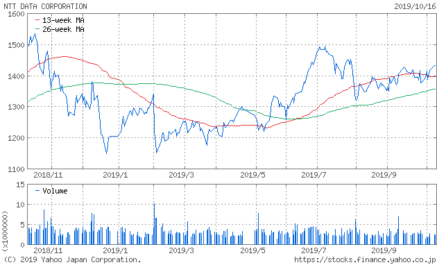 過去1年は、昨年秋には1600円を超えるなどしましたが、現在は1400円台の株価水準となっています(2019年10月現在)。
