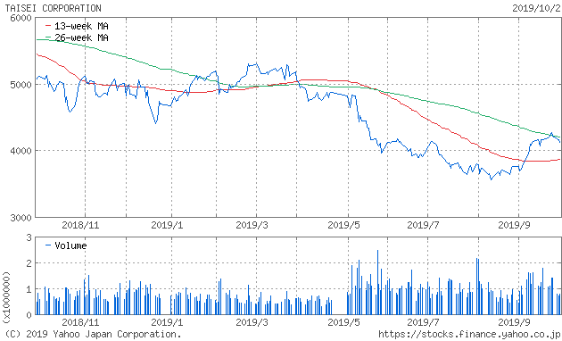 過去1年は、今年春には5300円を超えるなどしましたが、現在は4000円台前半の株価水準となっています(2019年10月現在)。
