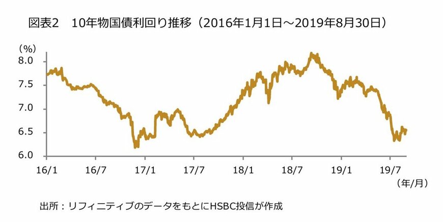 インド国債市場は、5月以降上昇(利回りは低下)基調にあったが、7月半ばからは一進一退となっている(2019年8月30日現在)。世界的な金融緩和の動き、インド準備銀行による利下げがプラス要因となる一方、米中貿易戦争を巡る不透明感、新興国市場全般に対する投資家センチメントの悪化などが悪材料となっている。