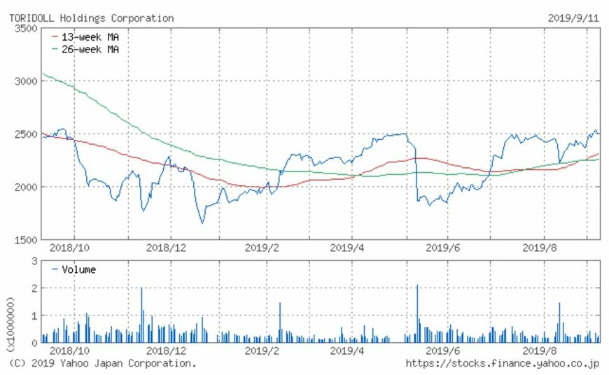 シリーズでお伝えしている「注目小売店月次実績」。今回はセルフ式うどん店「丸亀製麺」他を運営するトリドールHD(3397)の、2019年8月の月次動向及び過去実績、また過去1年の株価動向について振り返ってみましょう。
