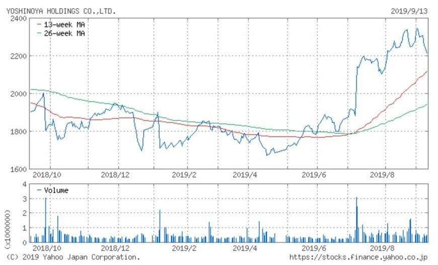 シリーズでお伝えしている「注目小売店月次実績」。今回は牛丼チェーン店「吉野家」他を運営する吉野家HD(9861)の、2019年8月の月次動向及び過去実績、また過去1年の株価動向について振り返ってみましょう。