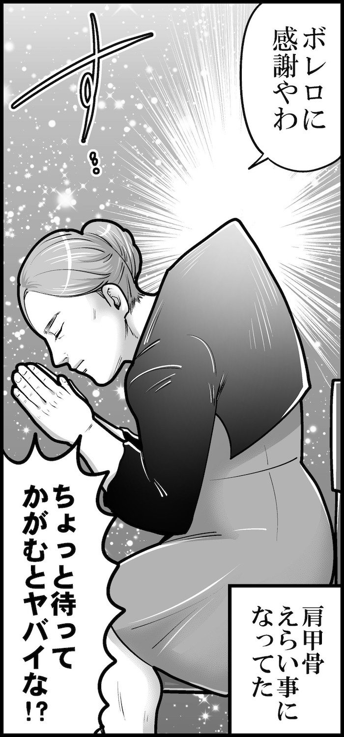 ボレロを着ているから大丈夫……のはずが、かがむと肩甲骨が「えらいこと」に。