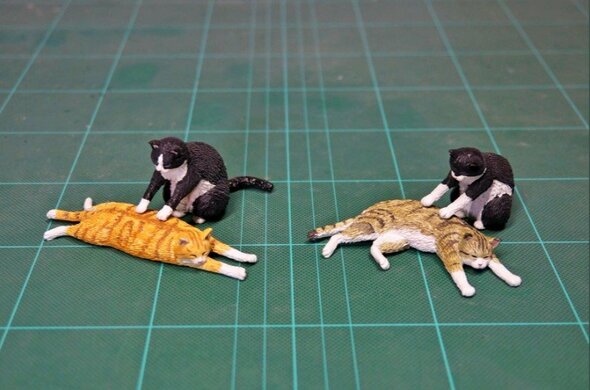 「猫のマッサージ店は今日も大忙しなのである。といった感じのフィギュアを作りました。大丈夫。疲れてるとかじゃないです。」
