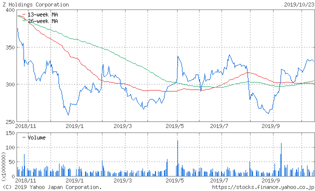 過去1年は、昨年秋には400円を超えるなどしましたが、現在は300円台前半の株価水準となっています(2019年10月現在)。