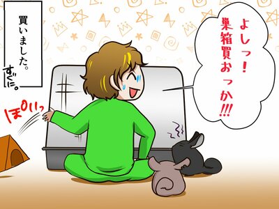 ある日のこと。職業柄、深夜の作業が多い祭さんは「夜中でも部屋の電気がついていて寝にくそうだし、大明神さんと小明神さんもお年頃だから、そろそろ巣箱でも買ってあげようかしら?」と思い立ちます。
