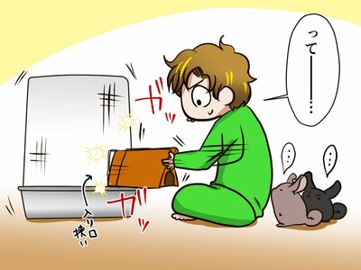 しかし、彼らが巣箱を気に入らなかった場合、買った巣箱が無駄になってしまうと考えた祭さん、「巣箱を使うタイプ(のチンチラさん)なのかを試してみよう!」と、段ボールで巣箱を試作することにしました。