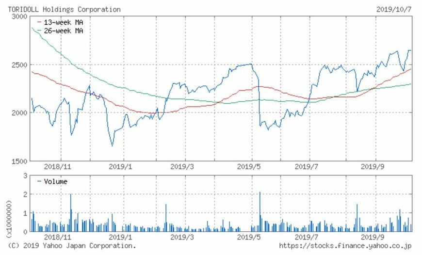 シリーズでお伝えしている「注目小売店月次実績」。今回はセルフ式うどん店「丸亀製麺」他を運営するトリドールHD(3397)の、2019年9月の月次動向及び過去実績、また過去1年の株価動向について振り返ってみましょう。