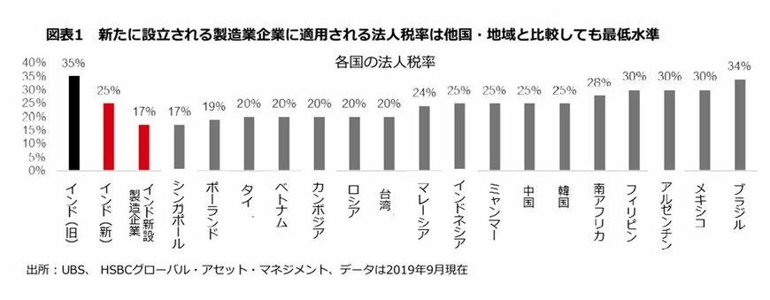 これらの減税策によって、先進国や他の新興国に対するインドの競争力は高まっている(図表1を参照)。