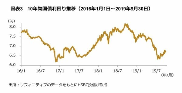 インド債券市場は、グローバル投資家にとり良好な投資機会を提供していると見ている。インド経済はインフレ率を歴史的低水準に抑えながら、比較的高い経済成長を続けており、ファンダメンタルズは良好である。また、インド国債は投資適格級ながら、利回りが高水準にある点も注目される。