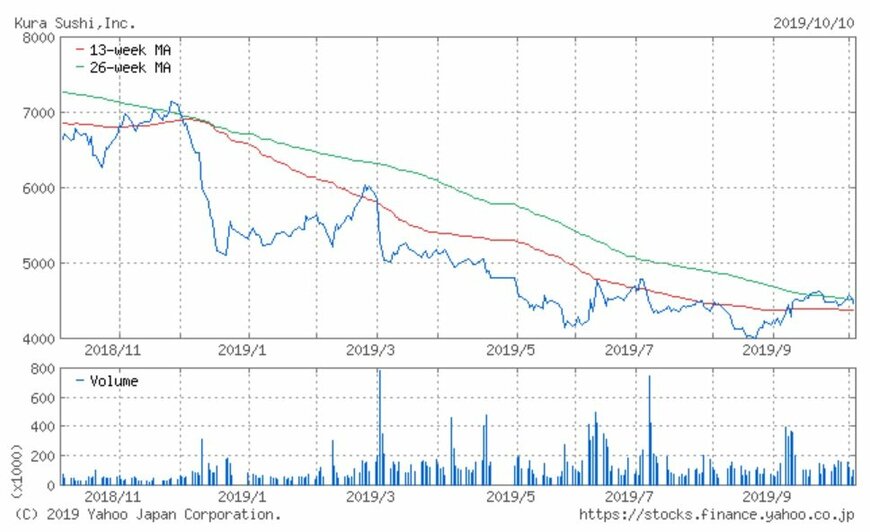 シリーズでお伝えしている「注目小売店月次実績」。今回は回転寿司チェーン店「くら寿司」を運営するくら寿司(2695)の、2019年9月の月次動向及び過去実績、また過去1年の株価動向について振り返ってみましょう。