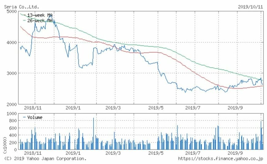 シリーズでお伝えしている「注目小売店月次実績」。今回は100円ショップ「セリア」を展開するセリア(2782)の、2019年9月の月次動向及び過去実績、また過去1年の株価動向について振り返ってみましょう。