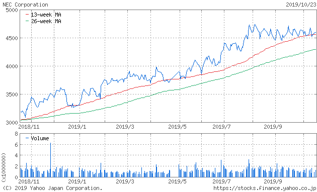 過去1年は、昨年夏には3000円を下回るなどしましたが、現在は4600円前後の株価水準となっています(2019年10月現在)。