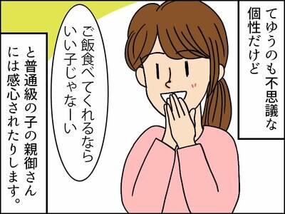「『大多数の子が好きなものが嫌い』で、『他の子がそれほどでもないご飯がとにかく好き』というところが、周囲の子たちとすごく違っているように感じて当時はすごく気になっていたんですが、支援級に入学させてからは、考えが変わりました。だって、支援級の子たち、みんな給食の時間に白飯ばっかりおかわりするんです。まるで競争しているみたい。普通級の保護者さんにも『ご飯食べてくれるならいい子じゃない。』なんて感心されたりするぐらいなんですよ。まだまだ、見た目のこだわりによる偏食に悩まされることもありますが、まっきーが健康であれば、それも『個性』だと思って、今は受け止めています。」そんな風に笑顔で語ってくれたなおにゃむさんの「まっきーの発達障害アルアル日記」。また次回もお楽しみに。