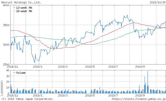 過去1年は、昨年冬には2600を割れるなどしましたが、現在は3500円前後の株価水準となっています(2019年10月現在)。