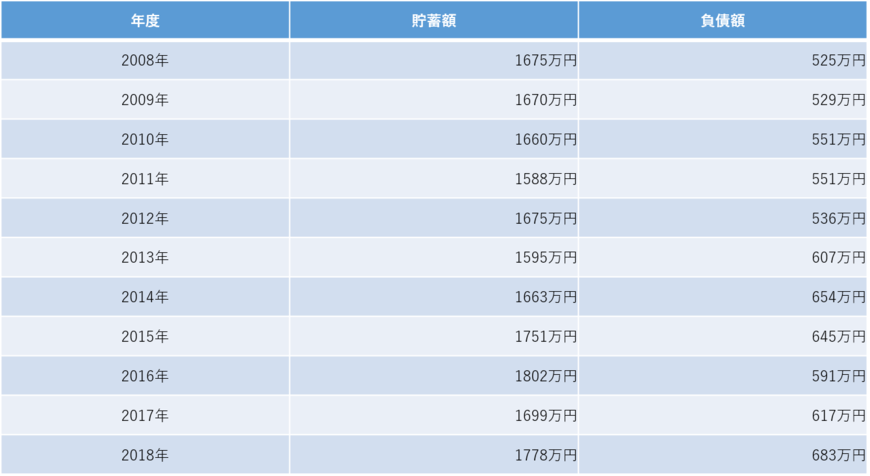 このように、貯蓄額は平均値を下回り、負債額は大幅に上回っていることが分かります。住宅ローンなどの負債を抱えている多くの世帯で、貯蓄と負債の金額が近く、貯蓄だけを大きく増やすのが難しいことがわかります。