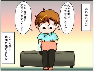 検査が終わるまでの30分、気づけば祭さんは大明神さんが家にやってきたときのことを思い出していました。