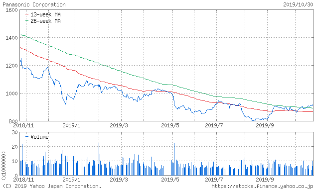 過去1年は、昨年秋には1300円を超えるなどしましたが、現在は900円台前半の株価水準となっています(2019年10月現在)。