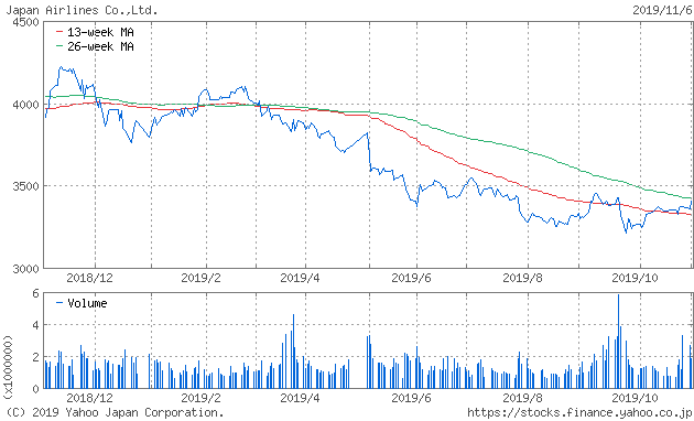 過去1年は、昨年冬には4200円を超えるなどしましたが、現在は3000円台前半の株価水準となっています(2019年11月現在)。