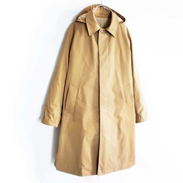 フードがついた、これまた定番であるバルマカーンコート。〈Brena〉の一着は、その代名詞とも言えるバーバリーの復刻生地を採用。シルエットはAラインの本格派です。