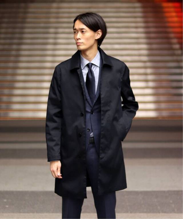 秋冬のコートは機能性も重視して選びたいという方にはこちら。小松精錬のストレッチツイル素材に、永久撥水加工と透湿防水フィルム加工を施した一着です。