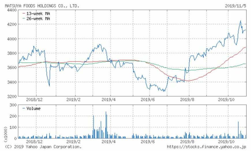 既存店・全店ともに、全ての月で対前年同月比プラス成長を果たすという好調な業績を背景に、株価は10月に4,000円台に乗るなど堅調な推移を見せています。下期も上期同様の好調な業績を維持できるのか注目されます。