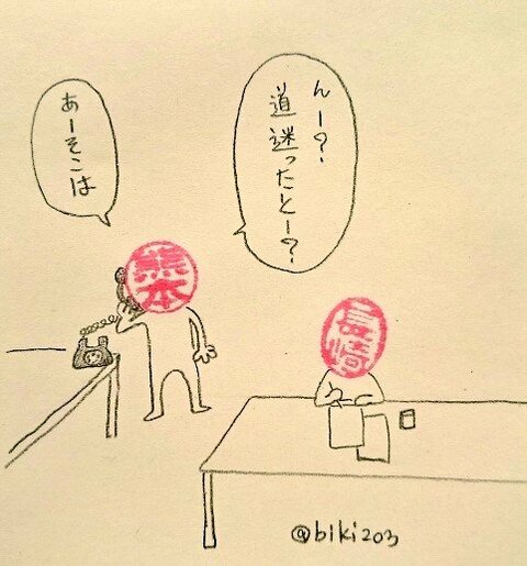 「ぎゃーん行って、ぎゃん行って」……概ね擬音のみで説明される道順。熊本県ではこれで伝わってしまうのでしょうか。一緒にいる長崎がびっくりしています。道順を説明する熊本の手が指示するように動いていたり、電話が切ると「チン」と音がする黒電話なのがかわいいですね。