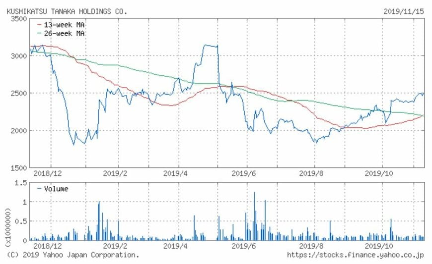 シリーズでお伝えしている「注目小売店月次実績」。今回は串カツチェーン店「串カツ田中」を運営する串カツ田中HD(3547)の、2019年10月の月次動向及び過去実績、また過去1年の株価動向について振り返ってみましょう。