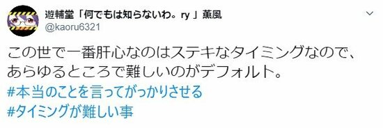 「この世で一番肝心なのはステキなタイミングなので、あらゆるところで難しいのがデフォルト。」