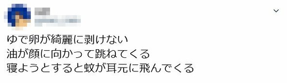 こちらはきっと誰もが経験しているちょっとストレスなこと3連発です。ゆで卵。つるんと剥けるときもあれば、どうあがいてもボロボロになって白身がほぼなくなってしまうこともあります。これはどうもゆで方によるようです。