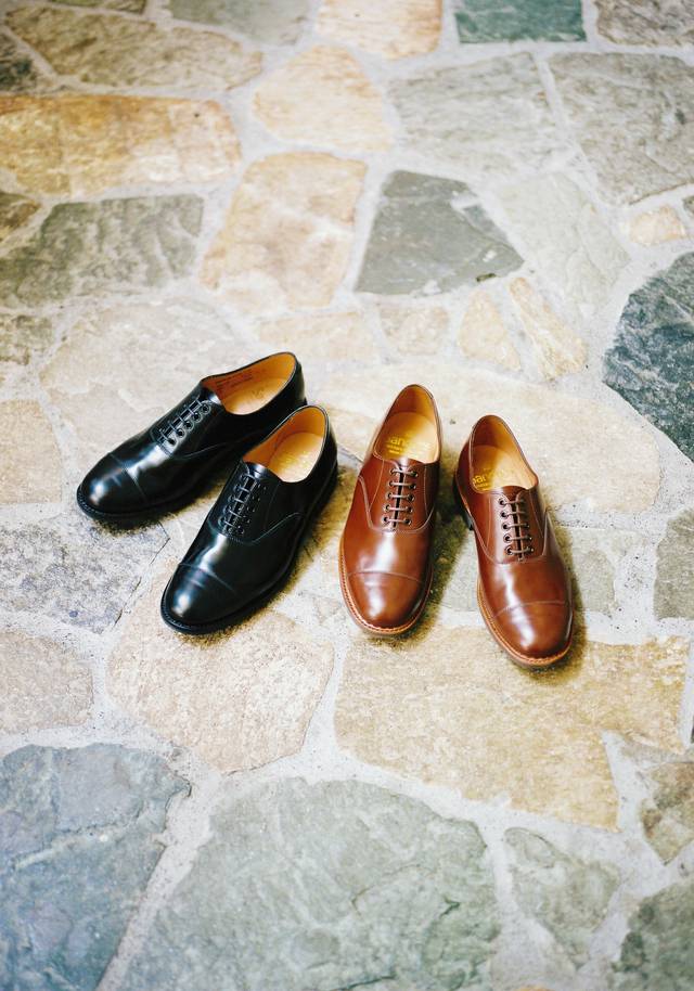英国ノーサンプトンのシューズメーカー〈SANDERS(サンダース)〉に〈FREEMANS SPORTING CLUB〉が別注したシューズは、そんなトレンドと年齢の狭間で揺れる大人にうってつけの一足です。ミリタリーコレクションのキャップトゥをベースに、本来の3本ステッチから2本に変更し、内羽根仕様にしたドレスなサンダースです。