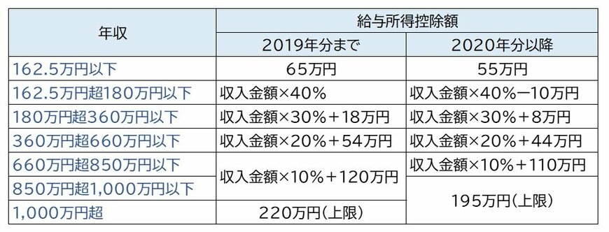 給与所得控除の額が一律10万円引き下げられることになりました。また、控除の要件である「給与等の収入金額」の上限が、現行の「年収1,000万円」から「年収850万円」となり、給与所得控除の上限額も現行の220万円から195万円と変更されます。すなわち、年収850万円以上の方にとっては、10万円以上の引き下げ額となります。