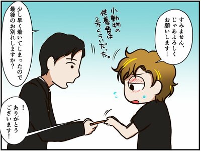 大明神さんをペット霊園に納めてもらうため、ペット供養をしてくれる葬儀屋さんを依頼した祭さん。(第27話 大明神のはなし⑥)火葬炉つきの車で大明神さんを引き取りに来てくれた業者さんは、これぞ『プロ』というような人で…。