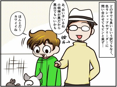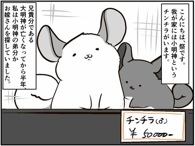 大明神さん亡き後、ひとりになってしまった小明神さんに新たな相棒を見つけてあげたいと思った祭さん。本邦初公開の彼氏とともに、ペットショップやブリーダーを当たってみますが、なかなかピンとくる子がおらず…。