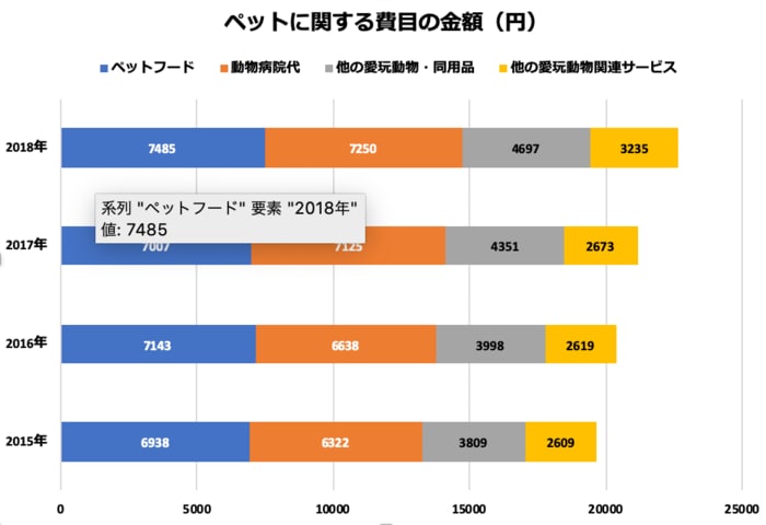 ペットの数自体は減少していますが、ペット費用は逆に上昇傾向にあります。