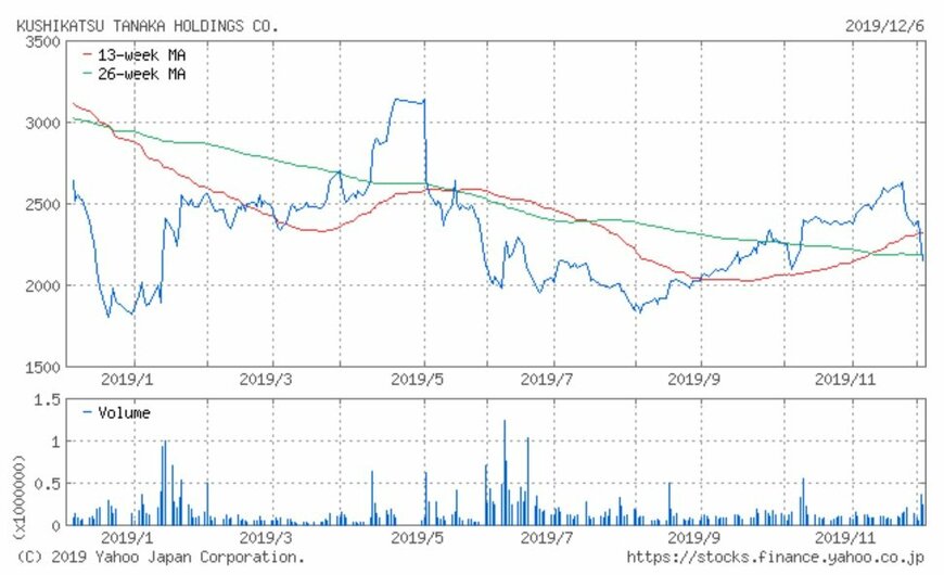シリーズでお伝えしている「注目小売店月次実績」。今回は串カツチェーン店「串カツ田中」を運営する串カツ田中HD(3547)の、2019年11月の月次動向及び過去実績、また過去1年の株価動向について振り返ってみましょう。
