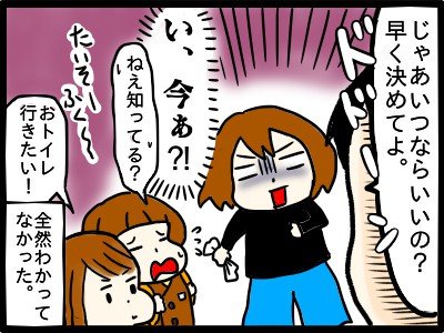 椅子に座ってパンをほおばり始めると、横に座った夫がカレンダーとにらめっこをしながら、他の候補日を探し始めました。「この日は?」「午後から小学校の懇談会。」「じゃ、この日は?」「午後から幼稚園の懇談会。あと、午前中はお店の荷物が届くから、家にいないと。」「じゃあ、この日は?」「長女のスポーツクラブの当番だから無理。あと、お義母さんが、この日とこの日は、仕事でいないから預けられないよ。」