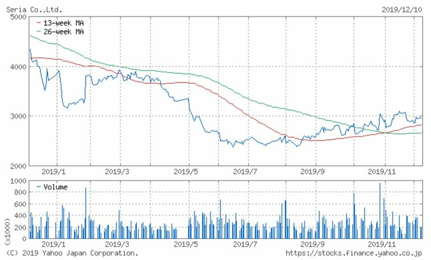 シリーズでお伝えしている「注目小売店月次実績」。今回は100円ショップ「セリア」を展開するセリア(2782)の、2019年11月の月次動向及び過去実績、また過去1年の株価動向について振り返ってみましょう。