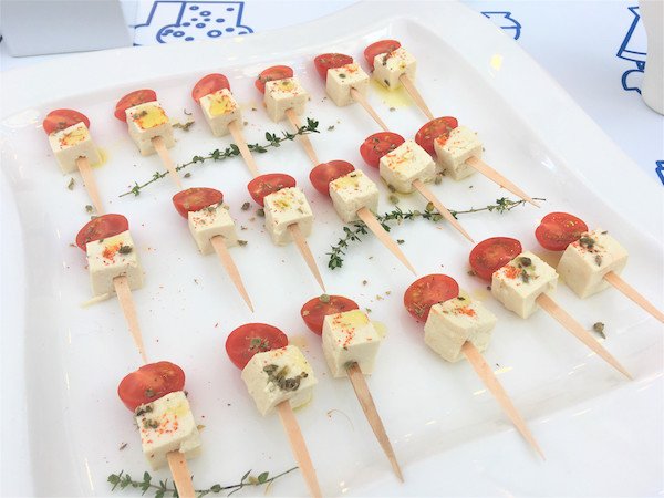 オリーブオイル(イタリア)とオレガノ(ギリシャ)、そして日本食の代表格である豆腐を使ったカプレーゼを監修したベリッシモさんは、「豆腐がEU食材と合うのは、チーズの代わりになるから」と語りました。