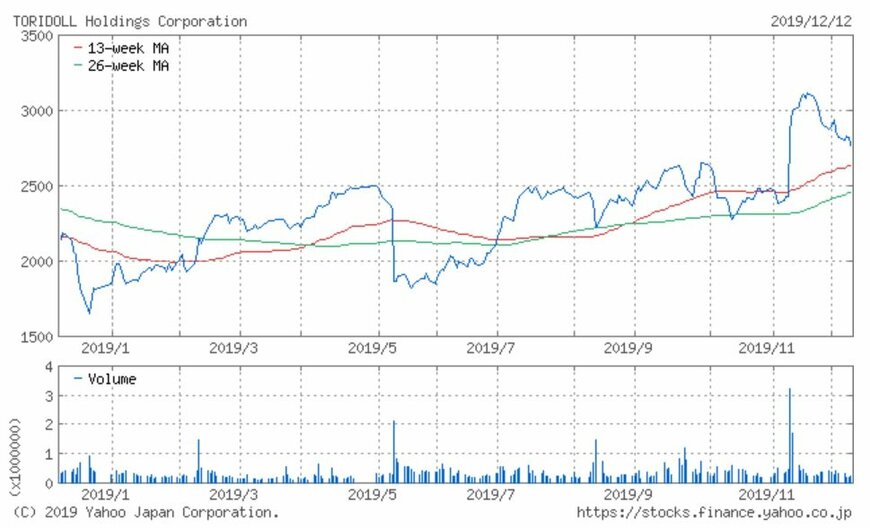 シリーズでお伝えしている「注目小売店月次実績」。今回はセルフ式うどん店「丸亀製麺」他を運営するトリドールHD(3397)の、2019年11月の月次動向及び過去実績、また過去1年の株価動向について振り返ってみましょう。