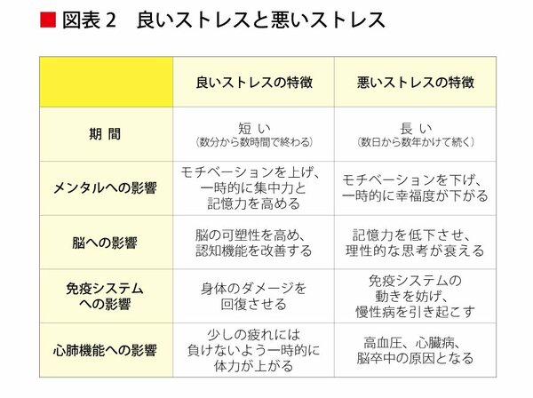 良いストレスと悪いストレスには、大きく分けると図表2〈別図版〉のような違いがあります。