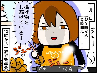 毎年恒例の義実家での新年会。本家の嫁であるねこねこむさんは、2時間以上の揚げ物の準備に始まり、お料理の準備にお給仕にと、新年早々大忙し。自ら買って出てお手伝いをしている彼女のことを、義両親も、夫も優しく気遣ってはくれますが…?