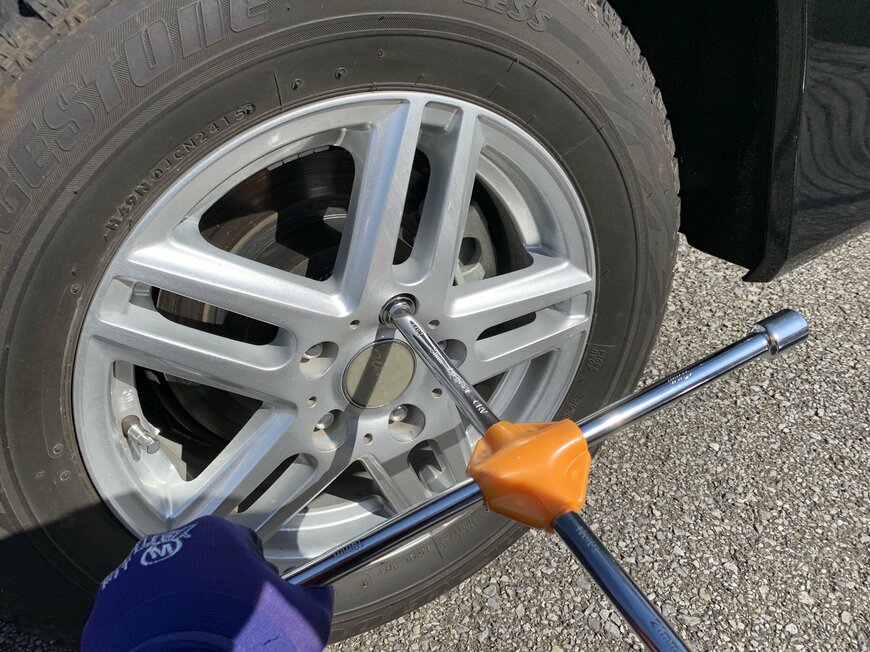 タイヤ交換における作業を3つに分けると「ジャッキアップ」「タイヤのナットを緩める(締める)」「タイヤを脱着する」となりますが、意外とジャッキアップの作業が大変です。
