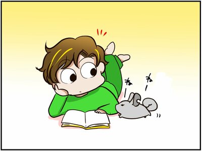 漫画家の祭さんは、小明神さん(4歳半)とおみくじちゃん(1歳)という、チンチラの夫婦と一緒に生活しています。チンチラはとても賢い動物で、自分の名前や飼い主の顔、おやつの場所などはすぐに覚えてしまいます。