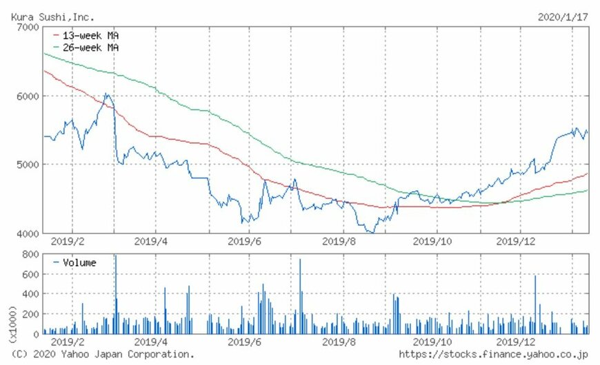 シリーズでお伝えしている「注目小売店月次実績」。今回は回転寿司チェーン店「くら寿司」を運営するくら寿司(2695)の、2019年12月の月次動向及び過去実績、また過去1年の株価動向について振り返ってみましょう。