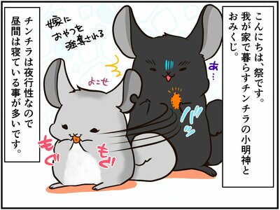 夜行性動物のチンチラの活動時間は深夜。毎日の部屋散歩も、実は夜中に行っています。しかし職業柄、生活が不規則になりがちな祭さん。たまーに寝過ごして、昼間に散歩をさせることになるのですが…?